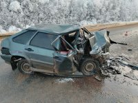 В Верховажском округе на 674-м км автодороги М8 Холмогоры произошла авария, в которой автомобиль отечественной марки столкнулся с трактором. По информации Госавтоинспекции Вологодской области, мужчина 2004 г.р., управляя автомобилем ВАЗ - 21440, допустил столкновение с трактором МТЗ, под управлением водителя мужчины 1997 г.р. В результате аварии травмы получила пассажир легкового автомобиля. Женщина 1997 года рождения была доставлена в муниципальное учреждение здравоохранения.