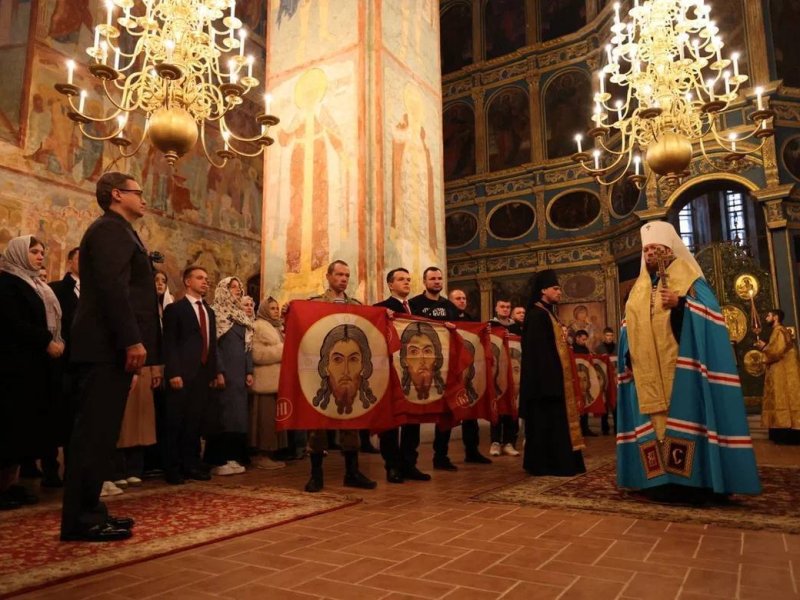 Освящение стягов провел митрополит Вологодский и Кирилловский Савва. Глава региона выразил признательность Владыке за формирование совместной духовной силы вологжан, всего русского народа, Вологодской области как части великой национальной, многоконфессиональной России.