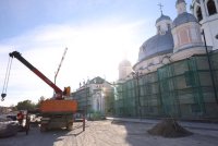 На объекте специалисты проводят армирование и бетонирование площади, монтируют бордюры и ливневые лотки, устанавливают опоры освещения и системы видеонаблюдения, укладывают бетонную плитку и гранит. Археологи свою работу завершили, а специалисты заменили инженерные сети. Теперь подрядной организации предстоит уложить брусчатку.